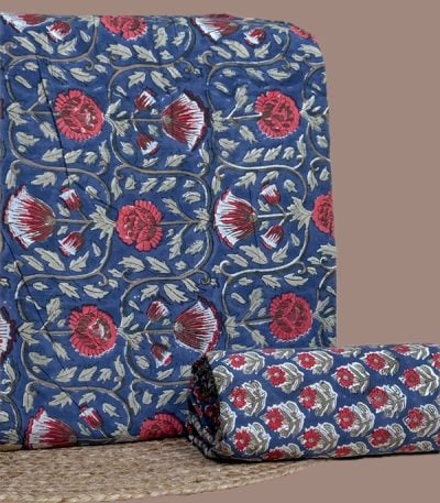 Blue – 2pc Pure Soft Cotton Blockprinted Top and Bottom Fabric Set