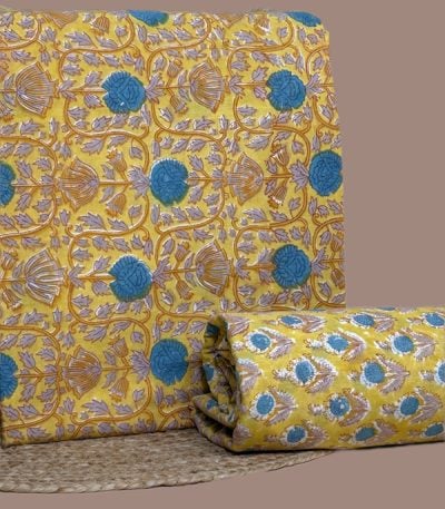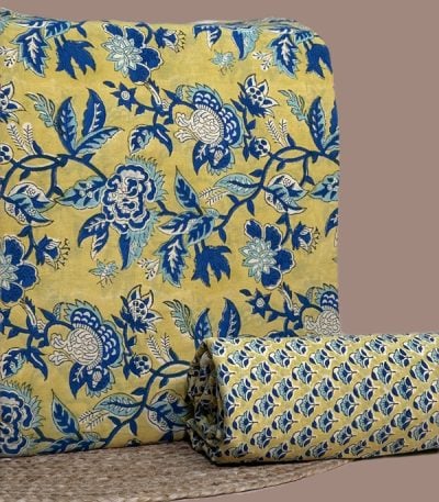 Yellow – 2pc Pure Soft Cotton Blockprinted Top and Bottom Fabric Set