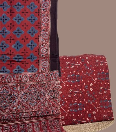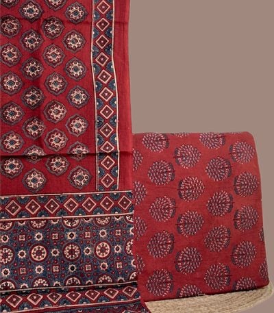 Red – 2pc Ajrakh HandCrafted Cotton Dupatta and Top Cotton Fabric Set