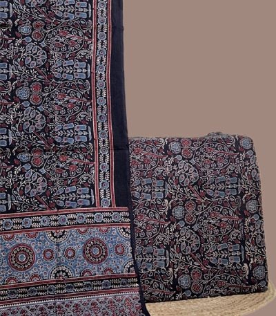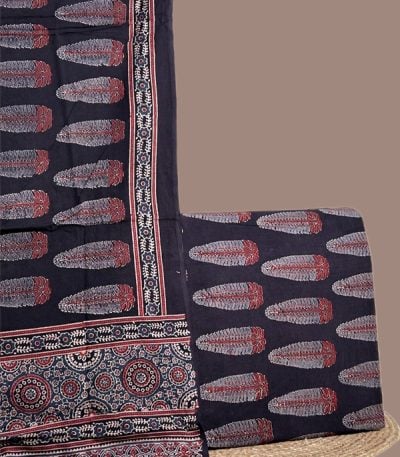 Black – 2pc Ajrakh HandCrafted Cotton Dupatta and Top Cotton Fabric Set
