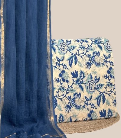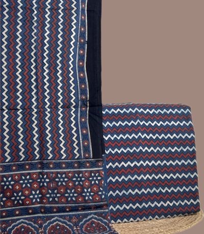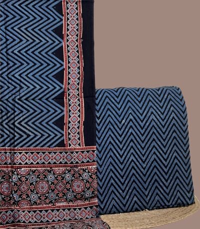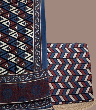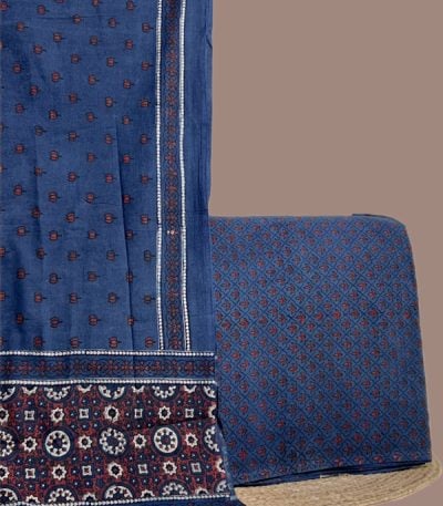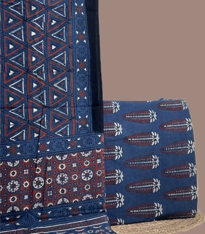 Blue – 2pc Ajrakh HandCrafted Cotton Dupatta and Top Cotton Fabric Set