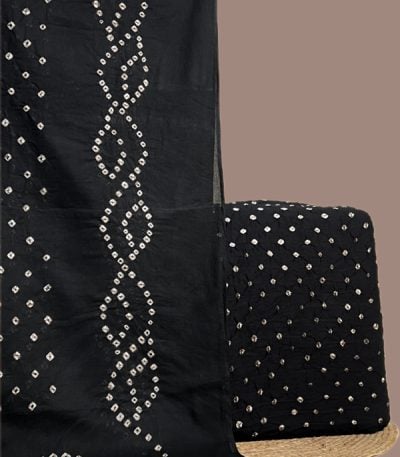 Black – 2pc Bandhani Cotton Dupatta with Cotton Bandhani Top Fabric Set