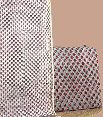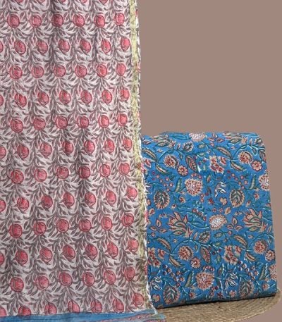 Blue – 2pc Blockprinted Cotton Dupatta and Pure Soft Cotton Top Fabric Set