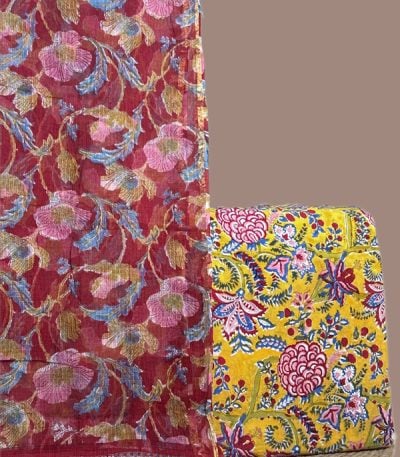 Yellow – 2pc Kota Doria Dupatta and Pure Soft Cotton Blockprint Top Fabric Set