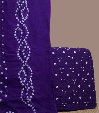 Purple – 2pc Bandhani Cotton Dupatta with Cotton Bandhani Top Fabric Set