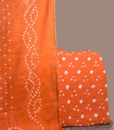 Orange – 2pc Bandhani Cotton Dupatta with Cotton Bandhani Top Fabric Set