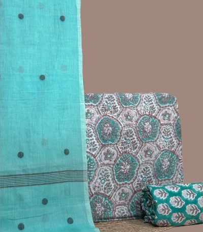 Green – 3pc Handloom Soft Cotton Dupatta with Pure Soft Cotton Top & Bottom Set