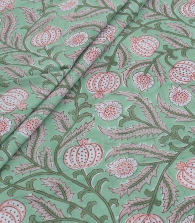 Pre-Cut 1m Pine Green Floral Handblock Printed 100% Pure Soft Cotton Fabric