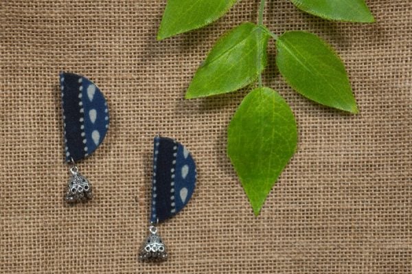 Authentic HandCrafted, 100% Pure Soft Cotton Printed, Silver-finish Oxidised Jhumki Antique Look Fabric Earrings